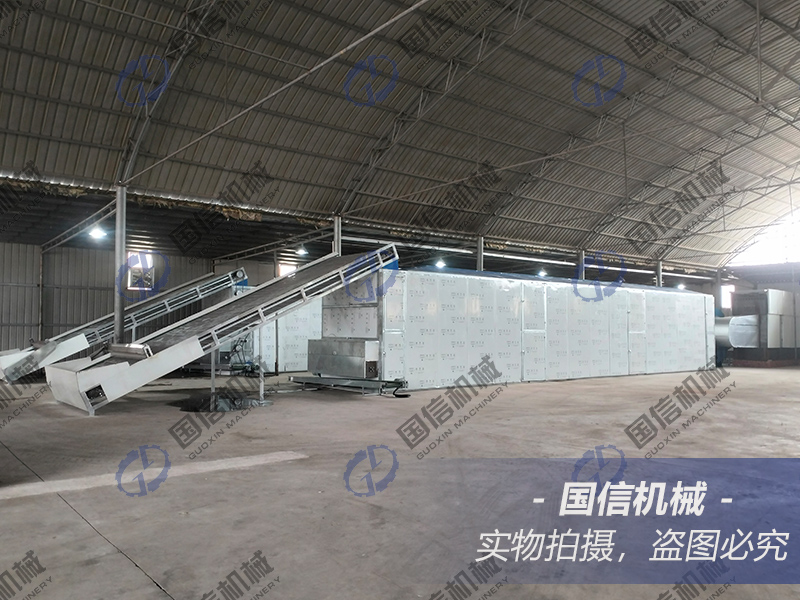 連翹烘干機(jī)的工作原理是將連翹放置到輸送帶上,經(jīng)過(guò)輸送帶上的勻料裝置后,平鋪到烘干機(jī)網(wǎng)帶上,輸送至烘干機(jī)內(nèi)部,然后通過(guò)網(wǎng)帶逐一過(guò)渡到下一層,每層之間設(shè)置