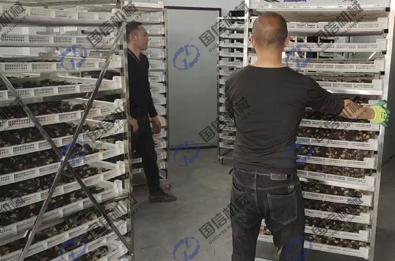 羊肚菌烘干設(shè)備主要是利用烘干房或者流水線烘干機(jī),使其快速脫水的方法。使用羊肚菌烘干設(shè)備不受氣候條件的影響,干制時(shí)間短,干制品外形豐滿、色澤好、香味濃,減少因腐爛而造成的損失,而且在干制加工過程中,霉菌孢子、害蟲被殺死,提高了商品價(jià)值,且更利于長期保存。目前市面上常見的羊肚菌烘干設(shè)備主要有采用了清潔能源形式的空氣能熱泵烘干房和全自動(dòng)化加工模式的網(wǎng)帶式烘干機(jī)。