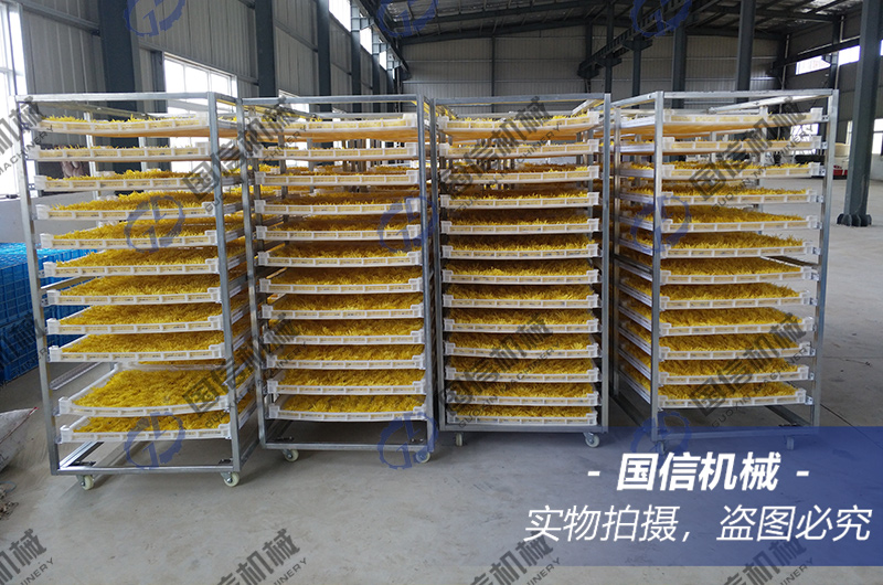 2、根據(jù)廠家提供的參數(shù),讓菊花的鋪料厚度和均勻性保持一定;
