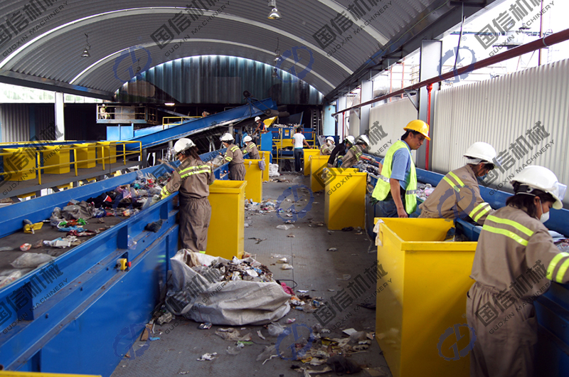 垃圾處理整套生產(chǎn)線是由給料機、輸送機、滾筒篩分機、棒條篩、滾軸篩、除鐵器、風選機、破碎機、打包機等設備靈活搭配使用,實現(xiàn)腐殖土的回埋處理,輕質可燃物壓縮外運焚燒處理,無機骨料篩分破碎做建筑原料處理。