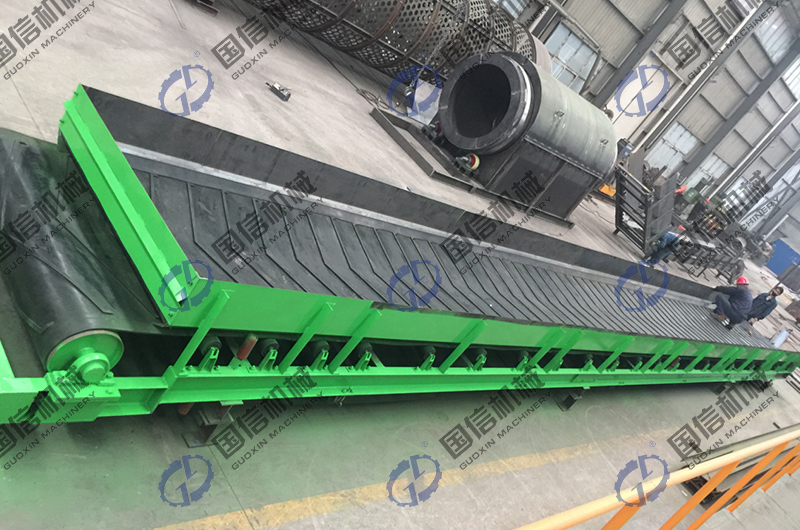 3、破袋之后的垃圾由皮帶輸送機送進滾筒篩分機中進行處理,篩選出有機物質,有機物經(jīng)過懸掛式的磁選機設備篩選出鐵制物。