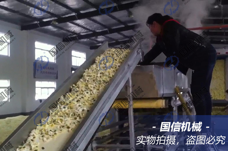 菊花殺青機具有殺青效率高、殺青后菊花色澤自然、口感好,設備操作簡單、工作過程中對環(huán)境無污染等特點。