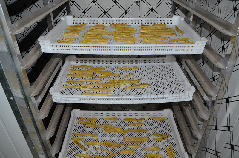 第一階段:待烘干房溫度升至大約30℃時將紅薯?xiàng)l放入烘房內(nèi)部。設(shè)定溫度為40℃,烘干時間1-2小時;