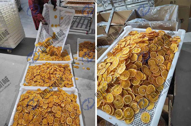 首先把橙子進(jìn)行清洗切片,均勻的擺放在托盤上,放入烘干房?jī)?nèi)即可;烘干階段,設(shè)定橙子烘干所需的溫度濕度等參數(shù),一般溫度在45-60度之間,時(shí)間大約5小時(shí)以上,按照你所需要的軟硬程度,設(shè)定具體的控制時(shí)間即可。使用這種橙子烘干工藝,對(duì)橙子進(jìn)行烘干,可以很好的保證橙子干自身的口感,也解決了橙子產(chǎn)量過剩的問題,有效的增加了橙子自身的經(jīng)濟(jì)價(jià)值,這也是我們國(guó)信機(jī)械廠家眾多水果烘干加工的一種,其實(shí)我們?cè)跒榭蛻籼峁┖娓稍O(shè)備的同時(shí),也會(huì)對(duì)物料干制加工進(jìn)行整體的烘干解決方案提供,通過近二十年的發(fā)展,我們積累了大量的水果烘干加工經(jīng)驗(yàn),如果你有相關(guān)需求,可與我們聯(lián)系,進(jìn)行相關(guān)的經(jīng)驗(yàn)交流。