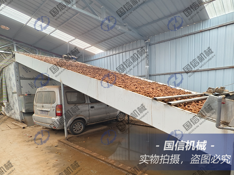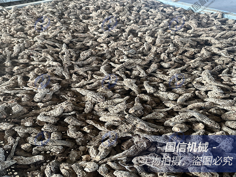 與土灶烘干和日曬干燥相比,采用網(wǎng)帶地黃烘干機(jī)是一種理想的干燥方法。其設(shè)備采用熱風(fēng)為干燥介質(zhì),濕物料之間連續(xù)接觸,使?jié)裎锪现兴乃蛛S熱擴(kuò)散,去除氣化和蒸發(fā),達(dá)到干燥的目的。地黃的烘干過(guò)程相對(duì)簡(jiǎn)單,只需要三個(gè)步驟就可以完成: